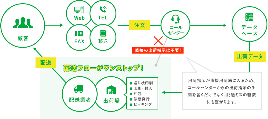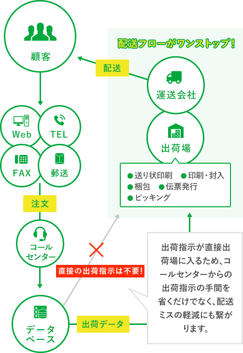 手間なく簡単に確認することができます。また、出荷指示が直接出荷場に入るワンストップ対応。